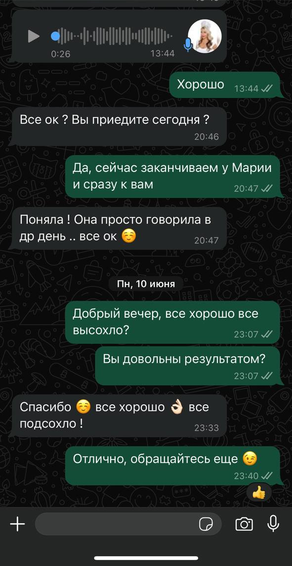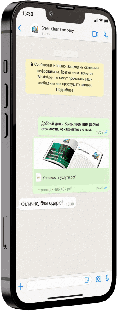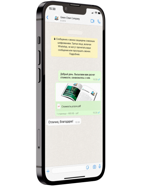 Можем начать с переписки в WhatsApp, это удобно и быстро