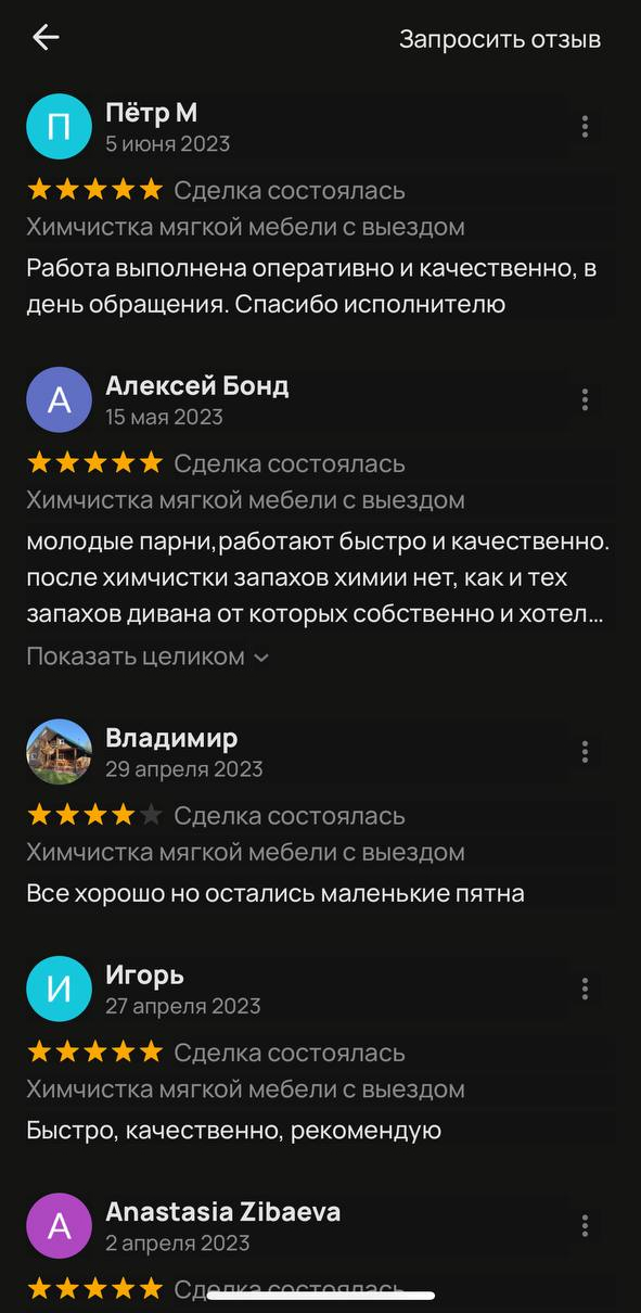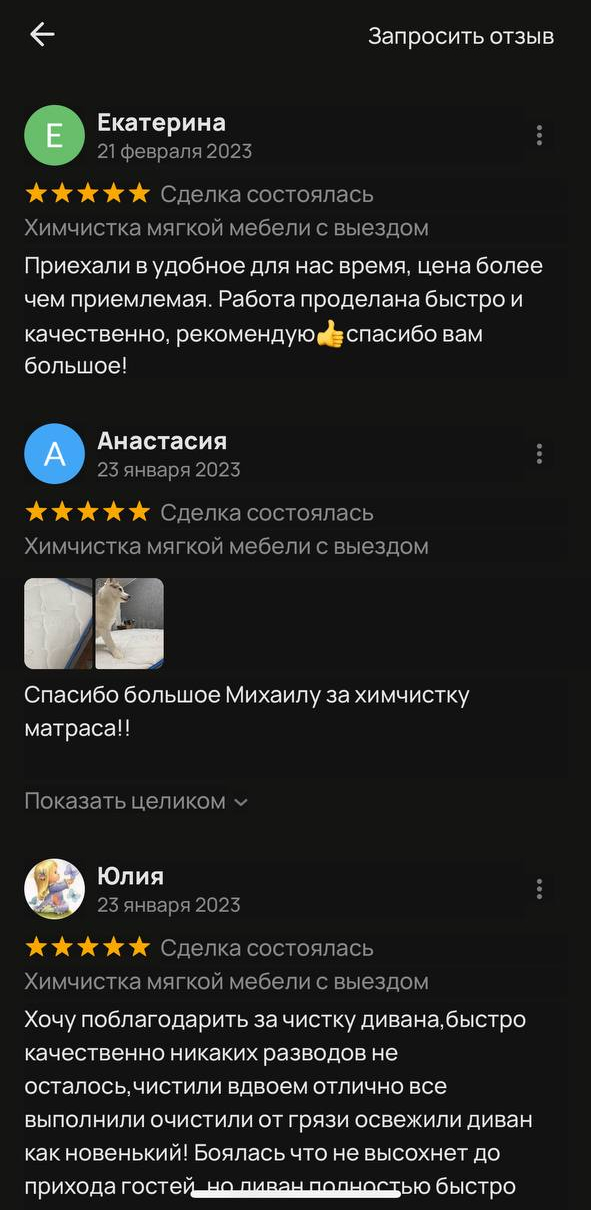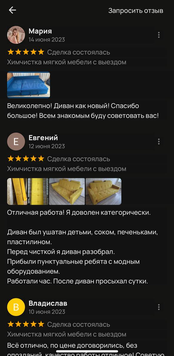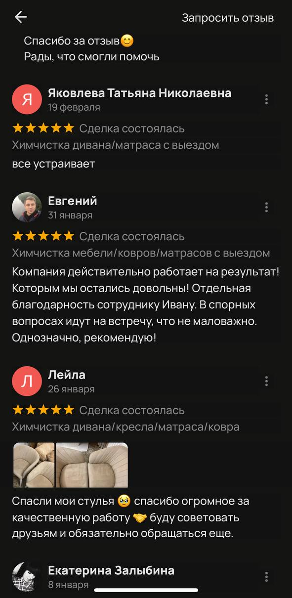 на химчистку дивана на дому