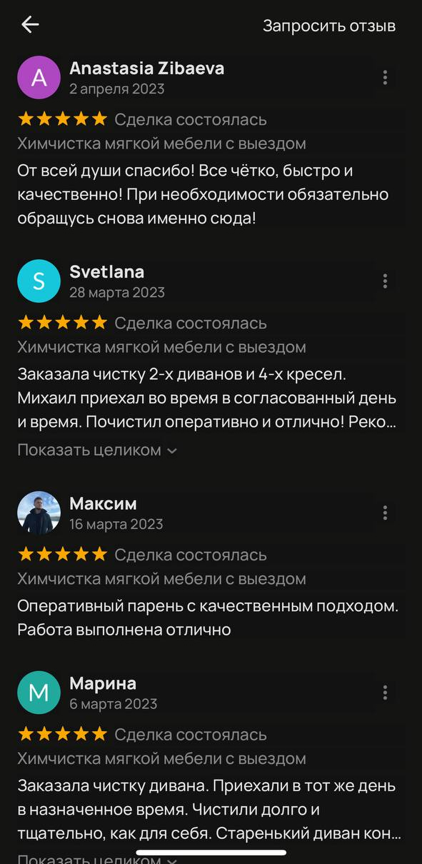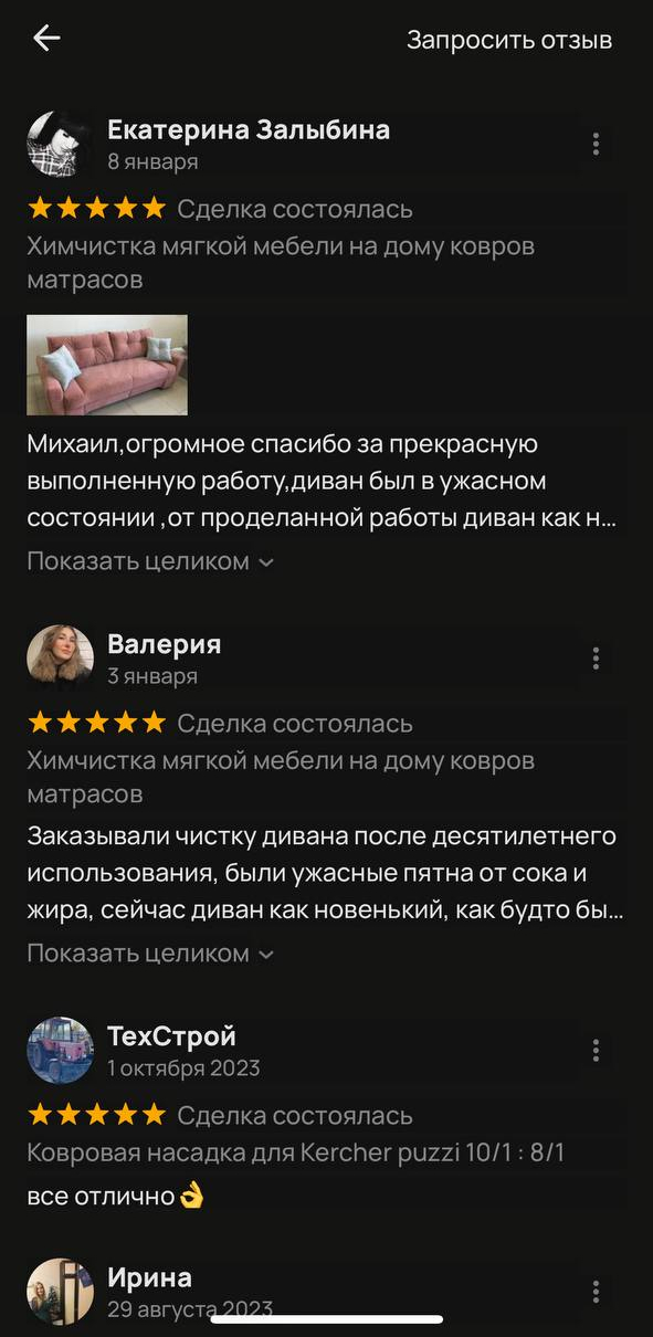 Химчистка мебели